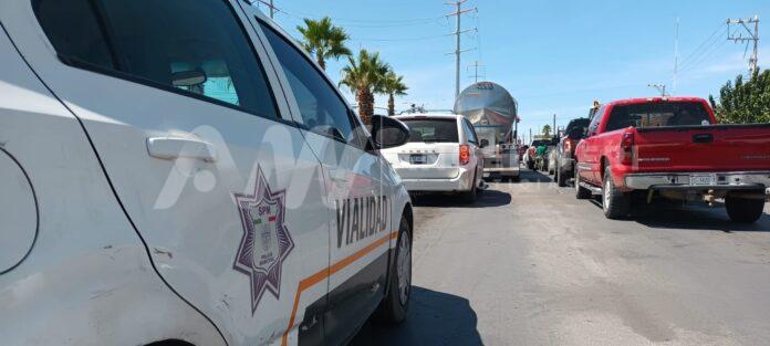 Los vehículos implicados fueron el quinta rueda, este con pipa lechera de grado alimenticio y tractocamion color azul, un taxi del sitio Nuevo Delicias, con número económico 2665 y una camioneta familiar de la marca Dodge, color blanco, con placas del estado de Chihuahua.