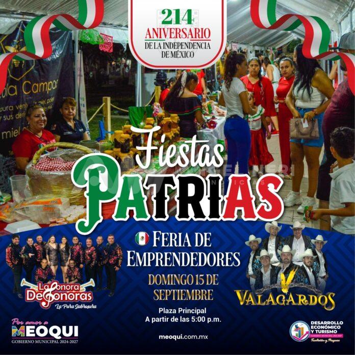 Meoqui estará de fiesta este próximo domingo 15 de septiembre en la conmemoración del 214 Aniversario del Inicio de la Independencia de México, con la presentación estelar de Grupo Los Valagardos y La Sonora de Sonoras, dando inicio en punto de las 8 de la noche en la Plaza Principal del municipio.
