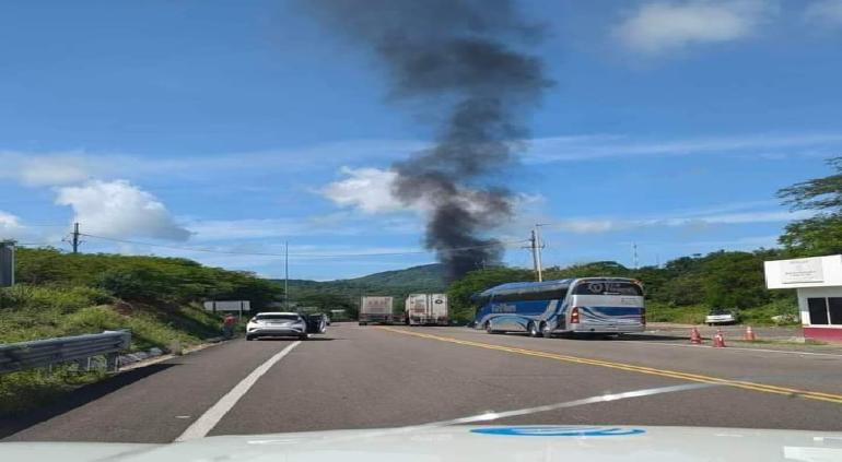 En las fotografías difundidas se puede observar llamas devorando algunos automóviles, así como la presencia de patrullas pertenecientes a la Guardia Nacional y camiones de una empresa.