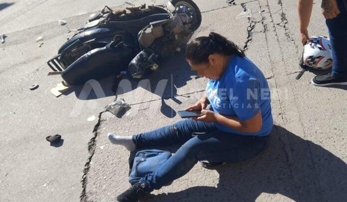 Una femenina que viajaba a bordo de una motocicleta, resultó lesionado en una de sus extremidades inferiores luego de participar en un percance vial tipo choque, sobre la avenida Plutarco Elías Calles, por lo que fue necesario que elementos de Vialidad acudieran para atender y de Paramedicos de Cruz Roja para la atención prehospitalaria.