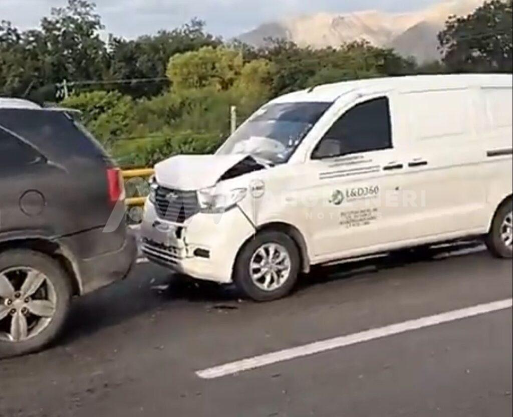 En ese momento llegó un hombre en una camioneta de una empresa de paquetería que terminó por golpear el vehículo KIA.