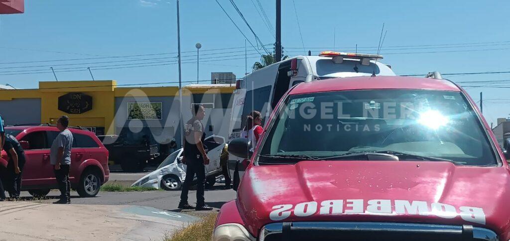 Un estrepitoso accidente tipo choque entre dos vehículos, tuvo lugar al mediodía de este sábado en el cruce del Boulevard Gómez Morín y la Avenida Sexta Sur, generando una fuerte movilización de cuerpos de emergencia, incluyendo la Dirección de Vialidad y paramédicos de Cruz Roja.