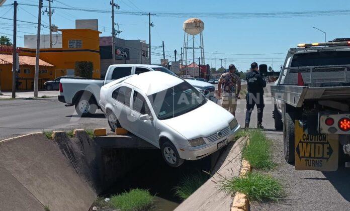 La fuerza del choque provocó que el Jetta fuera lanzado hacia el canal revestido que divide los sentidos de circulación del boulevard, quedando parcialmente dentro del canal, con la parte delantera hundida y la trasera suspendida, lo que le dio un aspecto encampanado.