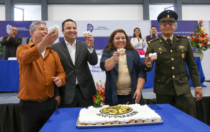 El alcalde Jesús Valenciano participó en la ceremonia del trigésimo octavo aniversario del Instituto Tecnológico de Delicias, la cual tuvo lugar en las instalaciones del nuevo gimnasio del plantel. Durante el evento, la Mtra. Lilian Karina Santiesteban Torres, directora del Tecnológico, encabezó la ceremonia en la que, junto al alcalde, se entregaron reconocimientos al personal docente por sus 15, 20, 25, 30 y 35 años de servicio.