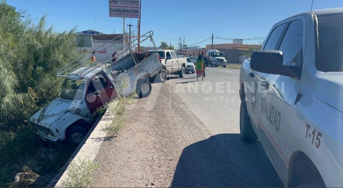 Dos vehículos particulares colisionaron en la vía que lleva de Delicias a Rosales, uno de ellos por el impacto y la pérdida control por poco caía al interior del dren quedando encampanado, el resultado fueron daños materiales y un lesionado leve.