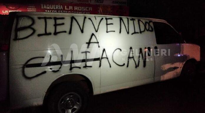 La camioneta tenía la leyenda escrita “bienvenidos a Culiacán” y señalan medios locales que coincide con la visita del presidente López Obrador al estado, como parte de su última gira.