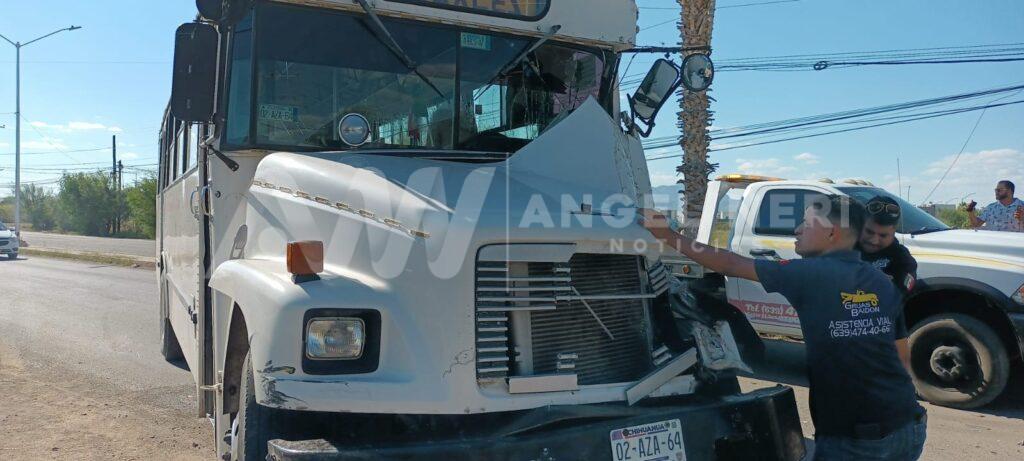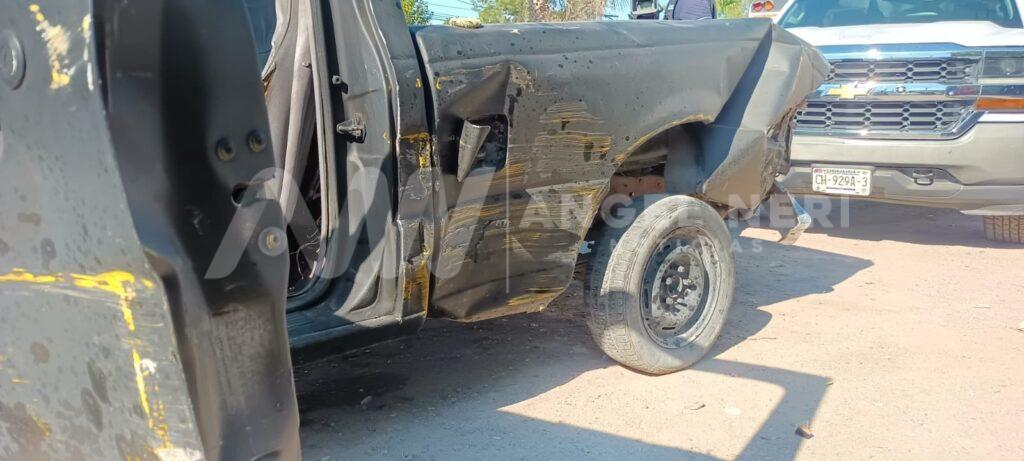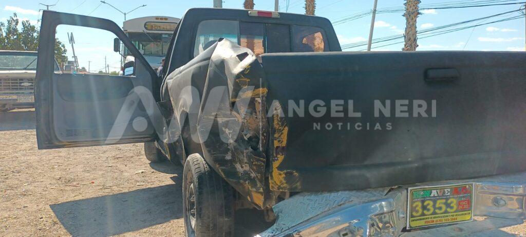 Tres personas resultaron lesionadas tras un fuerte accidente vial en el que se vieron involucrados una pick-up de modelo atrasado y dos camiones urbanos pertenecientes a una maquiladora, lo anterior sobre la avenida Fernando Baeza, a la altura de la glorieta Niños Héroes y la entrada del fraccionamiento Cumbres, en el tramo cercano a los yonques y la unidad de transferencia.