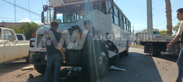 Tres personas resultaron lesionadas tras un fuerte accidente vial en el que se vieron involucrados una pick-up de modelo atrasado y dos camiones urbanos pertenecientes a una maquiladora, lo anterior sobre la avenida Fernando Baeza, a la altura de la glorieta Niños Héroes y la entrada del fraccionamiento Cumbres, en el tramo cercano a los yonques y la unidad de transferencia.