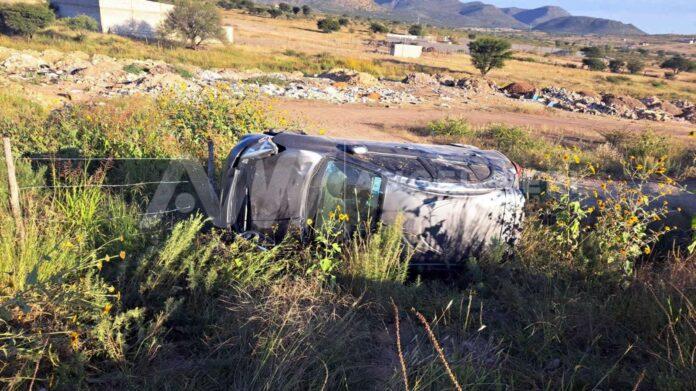 Mientras circulaba sobre la carretera que conduce de Parral a Santa Bárbara a la altura de la colonia Federico Ferro, la conductora de un auto Nissan March perdió el control del volante, salió de la banda de rodamiento y terminó volcando.