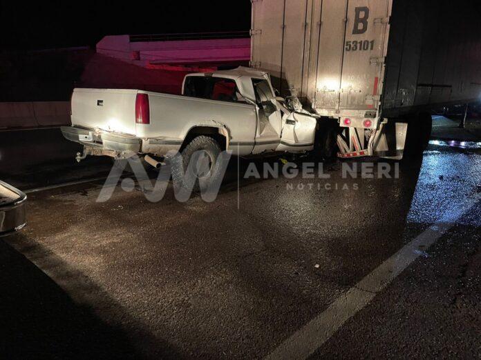 Posteriormente el conductor de la chevrolet se trata de dar a la fuga y se impacta en la parte posterior de un camión en la carretera federal en sentido de norte a sur sobre la carretera federal a la altura de el puente de San Lucas en el municipio de. Meoqui.