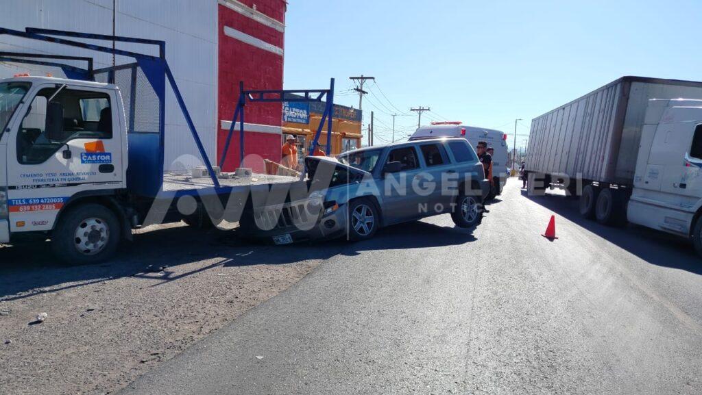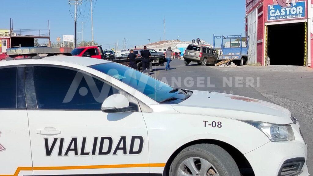 El incidente ocurrió cuando una camioneta dela marca Jeep, tipo Patriot, color arena, que circulaba de poniente a oriente, perdió el control al llegar a dicha ubicación, Por lo que la conductora, una mujer de entre 35 y 40 años, impactó la camioneta contra la parte trasera de un camión repartidor de la ferretería, lo que provocó que este chocara contra la barda del negocio.