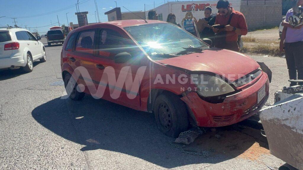 De acuerdo a lo narrado por la autoridad, un vehículo de la marca Ford, tipo Fiesta, color Rojo, circulaba libre sobre la avenida 16 sur y al llegar al cruce con la Río Chuviscar, fue impactado por un auto de la marca Nissan, tipo Sentra, color gris, ambos con placas del Estado de Chihuahua.