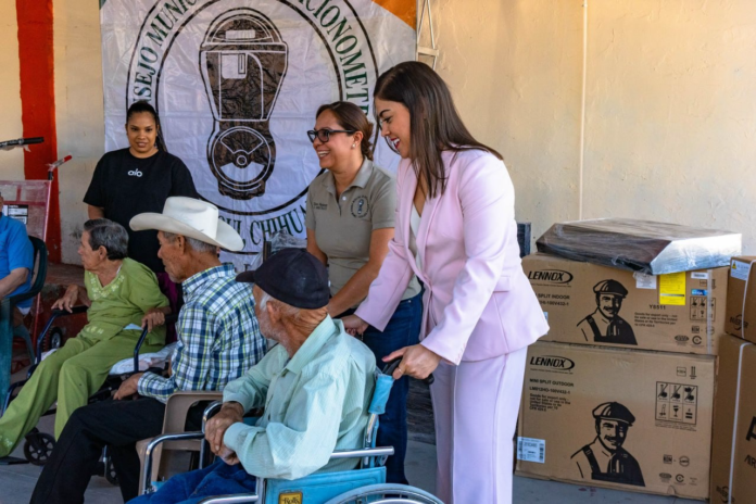 La Arq. Miriam Soto encabezó la entrega como Presidenta del Consejo de Estacionómetros de Meoqui de dos Mini Split, un comedor, una lavadora, una campana, un congelador y herramientas para jardinería al Asilo de Ancianos El Peregrino con un valor de 55 mil pesos