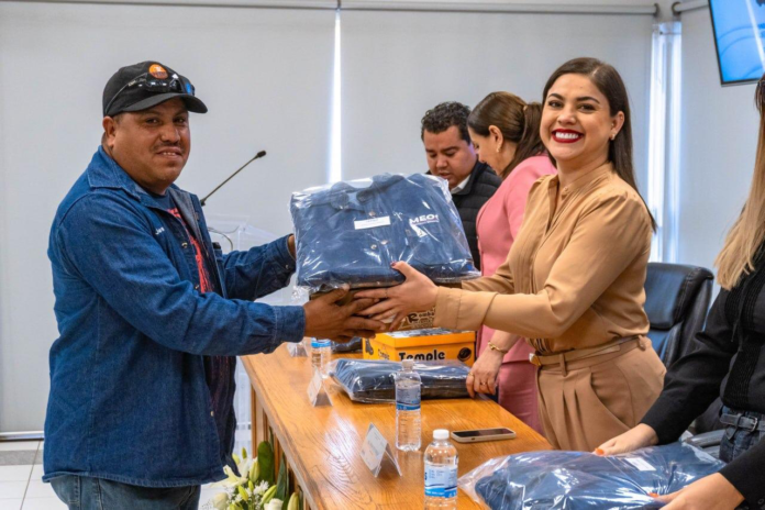 “Gracias por portar estos uniformes con orgullo en su labor diaria en beneficio de la comunidad”, asi lo dijo la alcaldesa de Meoqui, Miriam Soto, luego de realizar la entrega de 37 uniformes completos para colaboradores del sindicato de Servicios Públicos Municipales y Obras Públicas, contando con una inversión de más de 45 mil pesos por parte del Gobierno Municipal.