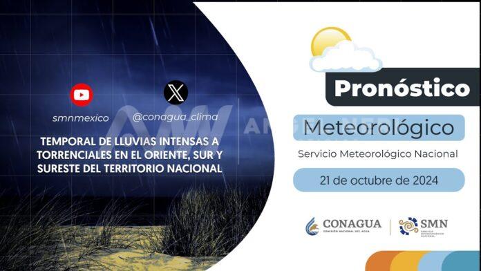 Para este lunes 21 de octubre, 27 de los 32 estados de México tendrán lluvia por la combinación de distintos eventos naturales.
