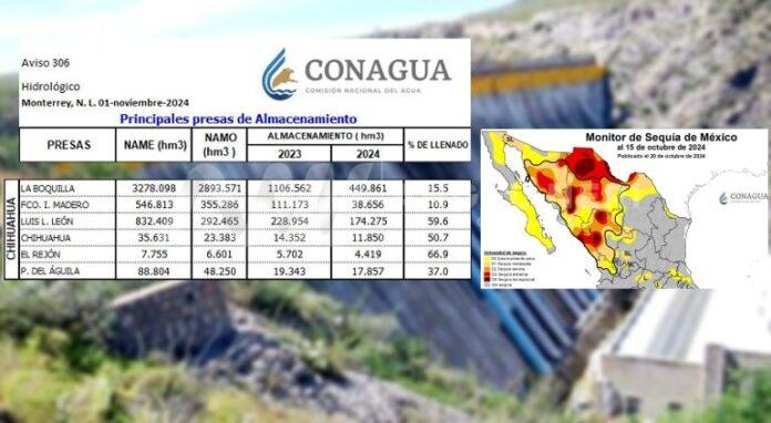 El director del Organismo de Cuenca Río Bravo (OCRB) de la Conagua, Luis Carlos Alatorre, difundió este 1 de noviembre el reporte oficial de los niveles de las presas del norte y noreste de México.
