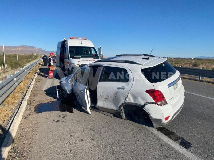 Esta mañana de martes se presento un accidente donde la conductora de un vehículo perdió el control al reventar un neumático y términó golpeándolo con el muro de contención esto sobre el kilómetro 171 de sur a norte carretera meoqui a Chihuahua dejando múltiples daños materiales de consideración en la camioneta marca Chevrolet trax en color blanco de modelo reciente placas DZF 168-B del estado de Chihuahua.