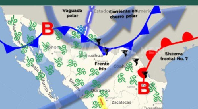 En el mismo punto en donde esperan caída de nieve, tendrán interacción el Frente Frío Número 8, una vaguada polar y una corriente en chorro polar.