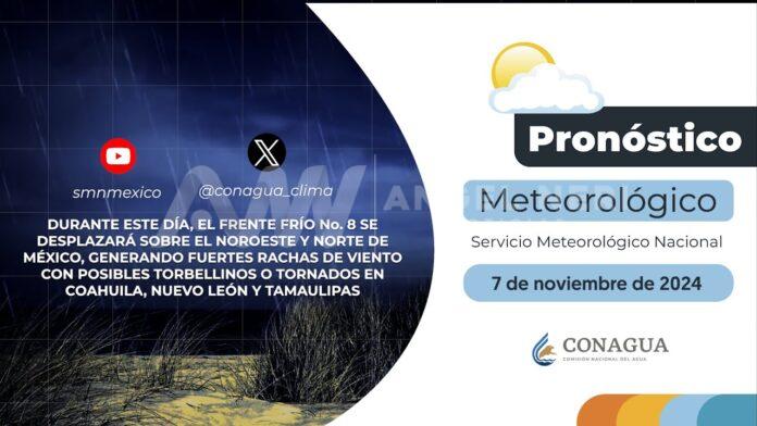 El pronóstico general para este jueves esperan en el estado grande, intervalos de chubascos (5 a 25 mm), posible caída de nieve o aguanieve en zonas serranas, temperaturas mínimas de -10 a -5°C con heladas y viento con rachas de 60 a 80 km/h, así como tolvaneras.