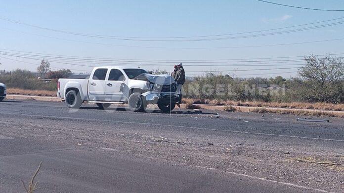 Este viernes por la mañana, un accidente vehicular dejó como saldo una camioneta destrozada al impactarse contra la caja de un tráiler en la carretera federal 45, a la altura del puente del Acceso Norte, cerca de las 11 a.m., siendo una camioneta GMC tipo Sierra, de doble cabina, color blanco, con placas DU-2451-B del estado de Chihuahua, la cual se desplazaba de sur a norte.