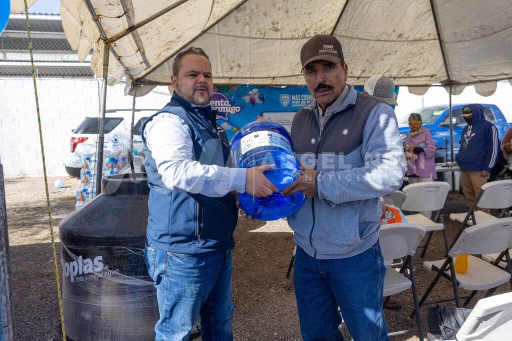 El director ejecutivo de la JMAS de Delicias, mencionó el sorteo realizado para la entrega de 60 tinacos y más de 150 garrafones de agua purificada, en coordinación con la Junta Central de Agua y Saneamiento del Estado, cuyo director ejecutivo, Mario Mata Carrasco, también hizo acto de presencia.