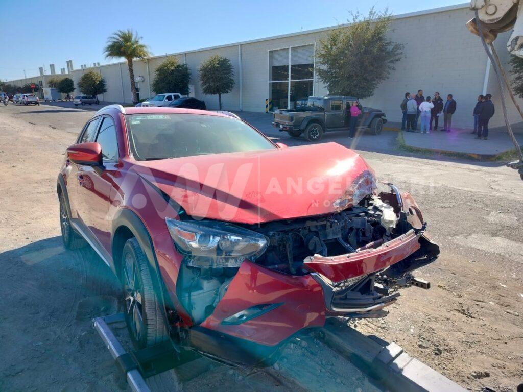 Un fuerte accidente vehicular se registró en la avenida Ferrocarril, en el sector norte de la ciudad, cuando el conductor de una camioneta Nissan, modelo 2000, circulaba en sentido contrario y al llegar al cruce con la calle Octava, fue impactado en su costado izquierdo por una camioneta tipo vagoneta, marca Mazda, que transitaba de poniente a oriente y cuyo frente quedó severamente dañado tras el choque.
