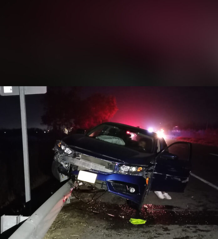 Un fuerte choque en la carretera federal de Delicias a Meoqui dejó un auto destrozado y sus ocupantes valorados después de una supuesta discusión entre la pareja que viajaba en el vehículo. El accidente ocurrió cerca del kilómetro 144, poco antes de las 11 de la noche.