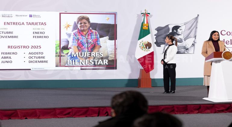 También señaló que el día de mañana dará inicio la entrega de las tarjetas a las mujeres, y estarán en el Estado de México haciendo la entrega formalmente de las primeras tarjetas. “Les vamos a enviar un mensaje de texto al número de teléfono que nos dejaron en su registro, hay que estar atentas a ese mensaje y dirá día hora y lugar donde deberán recibir esta tarjeta”.