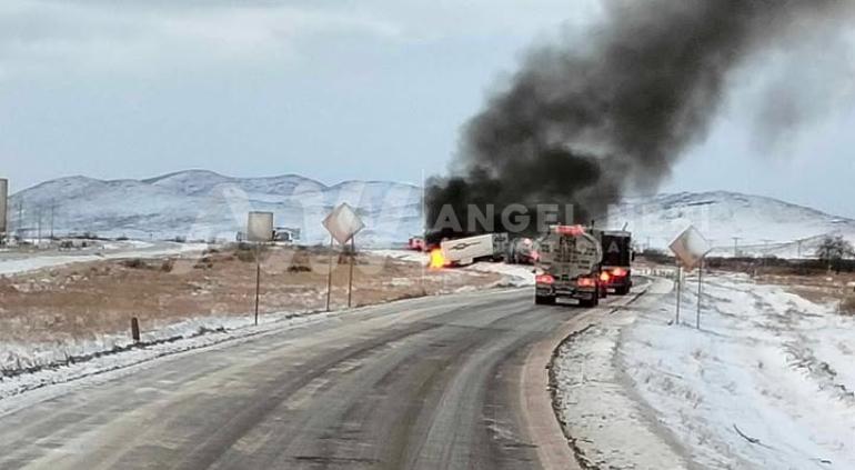 Incluso la pipa se incendió por el fuerte impacto del choque, además de que se salieron de la carretera.