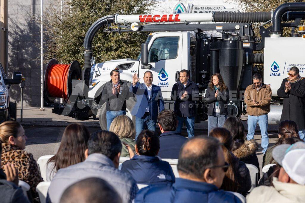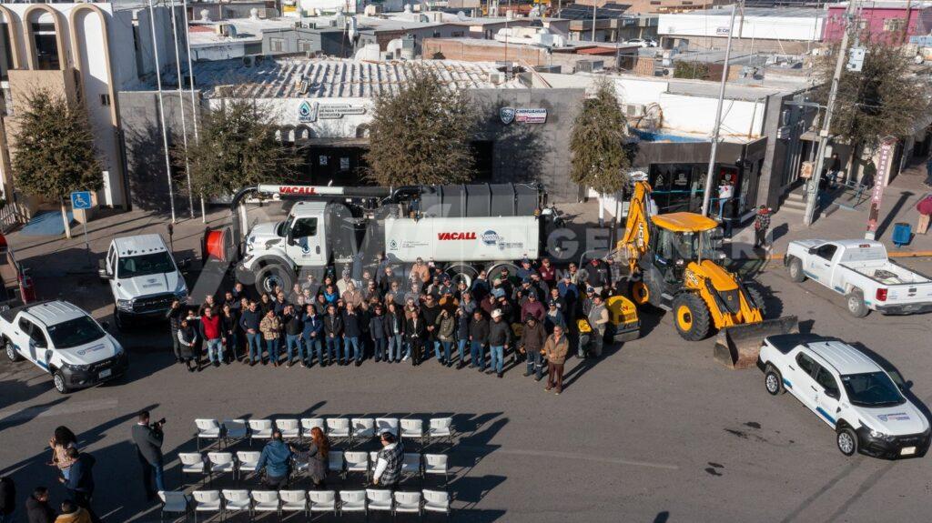 Este martes por la mañana se puso en funcionamiento la nueva maquinaria adquirida por la Junta Municipal de Agua y Saneamiento de Delicias, lo cual consta de un camión de desazolve, uno más de carga, dos vehículos para medición, un rodillo compactador y otras herramientas de mano.