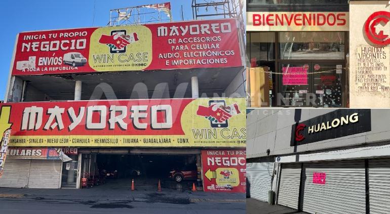 Por otro lado, el negocio «Win Case», en la Calle Aldama, que presumía venta al mayoreo de productos electrónicos e importaciones, también cerró. Este último destacaba por un logotipo que mostraba dos manos estrechándose: una con la bandera de México y otra con la de China, en alusión a la relación comercial entre ambos países.