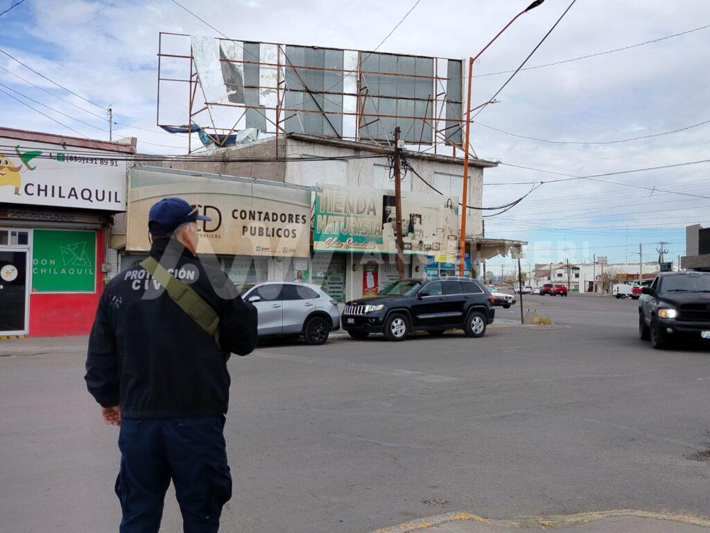 Este viernes al mediodía, las autoridades de Protección Civil atendieron un reporte sobre un espectacular que representa un peligro para la ciudadanía en la intersección de la avenida Río Chuvíscar, la calle Tercera y la avenida Sexta Norte, en el centro de la ciudad, frente a un restaurante reconocido.