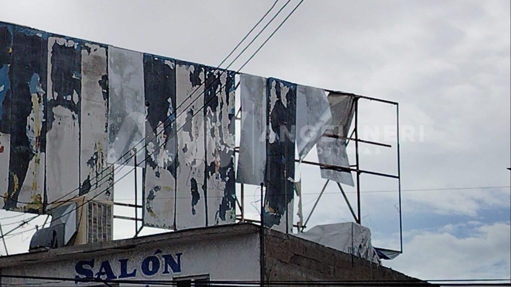 El espectacular presenta láminas sueltas que, debido a las ráfagas de viento de aproximadamente 35 km/h registradas en la zona, corren el riesgo de desprenderse, escenario que pone en peligro tanto a transeúntes como a conductores y negocios cercanos, ya que una caída podría causar daños materiales e incluso herir a personas.