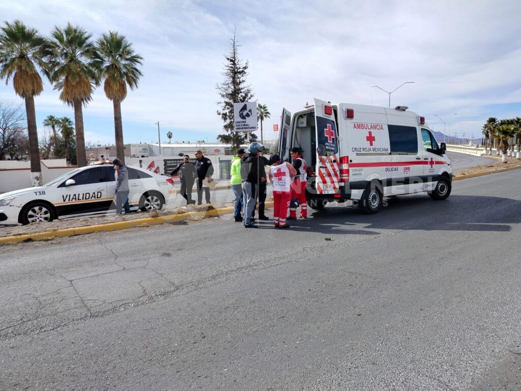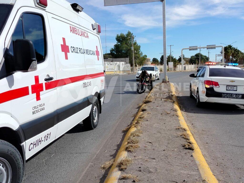Minutos más tarde, paramédicos de la Cruz Roja Mexicana lo abordaron a una ambulancia, donde le realizaron una valoración para posteriormente trasladarlo a un hospital, mientras que la motocicleta involucrada, una Italika de color gris con negro, sufrió daños materiales estimados en 1,500 pesos, según el peritaje de Vialidad.