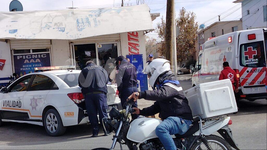 El percance ocurrió alrededor de las 12:30 p.m. y fue protagonizado por dos vehículos, uno de ellos de la marca Dodge, tipo Caliber, color gris, conducido por una mujer, y una motocicleta de la marca Italika, en colores rojo y negro.