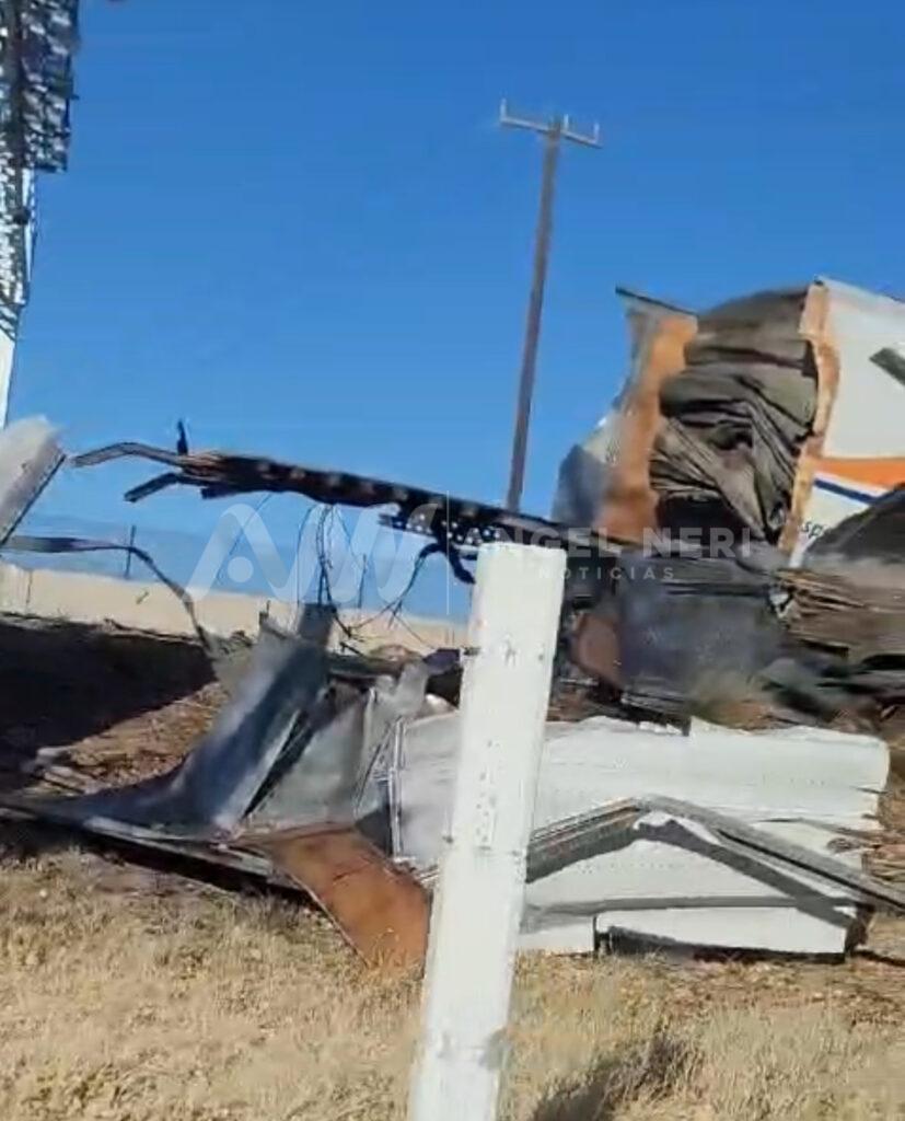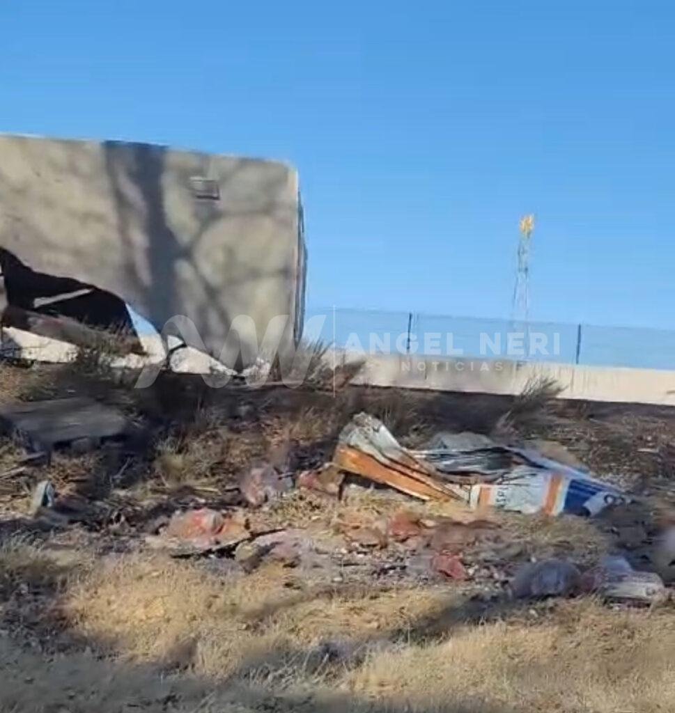 Aproximadamente a las cinco de la tarde, un tráiler que circulaba por la carretera federal 45 protagonizó un fuerte accidente, dejando como resultado fuertes, daños en arbotantes de la zona, así como el contenedor que transportaba totalmente destrozado.