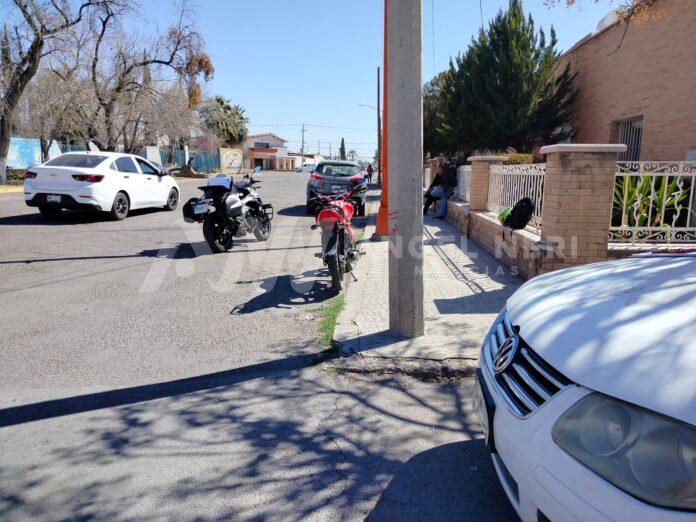 Gracias a que portaba el casco de seguridad, el cual quedó prácticamente dañado, un motociclista logró salir ileso al participar en un aparatoso accidente este miércoles al mediodía en el cruce conflictivo del Teatro de la Ciudad, viéndose involucrados una motocicleta Italika roja y un vehículo Nissan gris, cuyo conductor omitió un señalamiento de alto, provocando que la motocicleta impactara contra la parte frontal del automóvil.