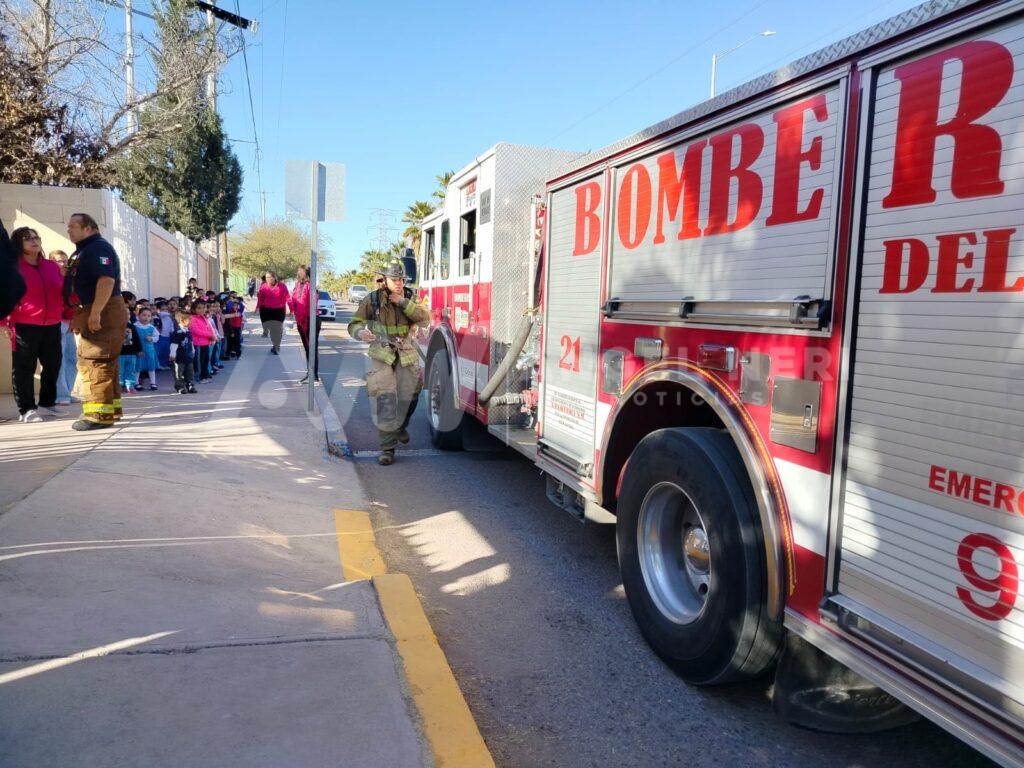 Luego de una pausa por el periodo vacacional de diciembre, el Departamento de Bomberos de Delicias retomó el programa de prevención El Fuego No Es Cosa De Juego, realizando un simulacro de incendio y rescate en el Jardín de Niños Amado Nervo, ubicado en el fraccionamiento San Carlos.