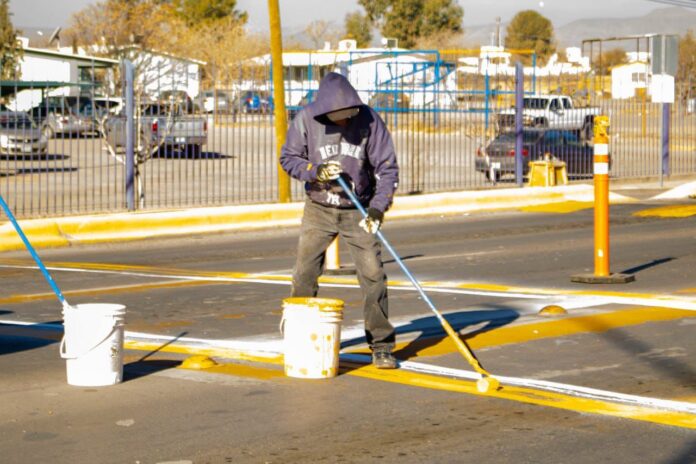 Con el objetivo de mantener la seguridad vial, asi como mejorar la imagen urbana, la Dirección de Seguridad Publica de Meoqui, trabaja en el pintado vialidades, donde hasta el momento, se ha trabajado en un total de 38 pasos peatonales y 42 topes en distintas zonas del municipio, reflejando el compromiso con la seguridad vial y el orden urbano.