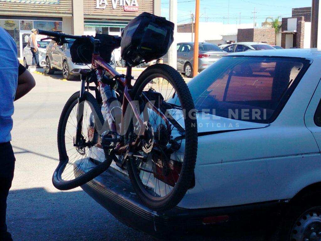 El accidente ocurrió alrededor de las 2:30 de la tarde, cerca de la gasolinera Plusco. La camioneta no logró detenerse a tiempo y chocó contra el vehículo, causando daños considerables en la bicicleta y la parte trasera del automóvil.