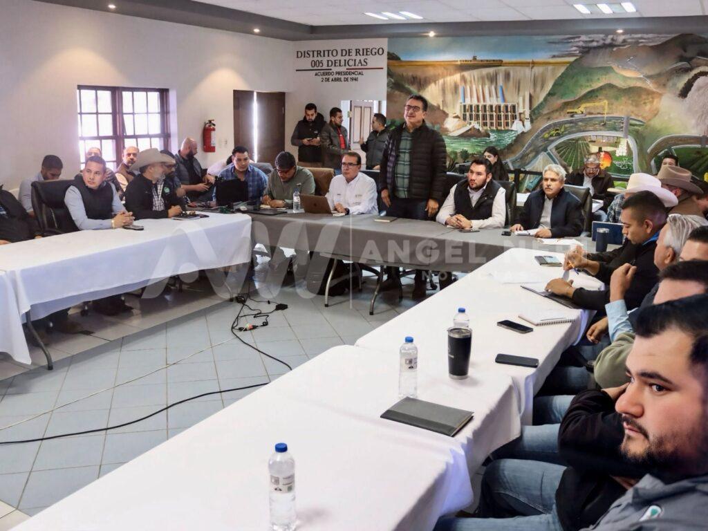La Junta Central de Agua y Saneamiento (JCAS) sostuvo una reunión en las instalaciones de CONAGUA Delicias con el Subdirector de Infraestructura Hidroagrícola de CONAGUA, Aarón Mastache, representantes de la Secretaría de Agricultura y Desarrollo Rural (SADER), usuarios del Distrito de Riego 005 y el secretario de Desarrollo Rural, Mauro Parada.