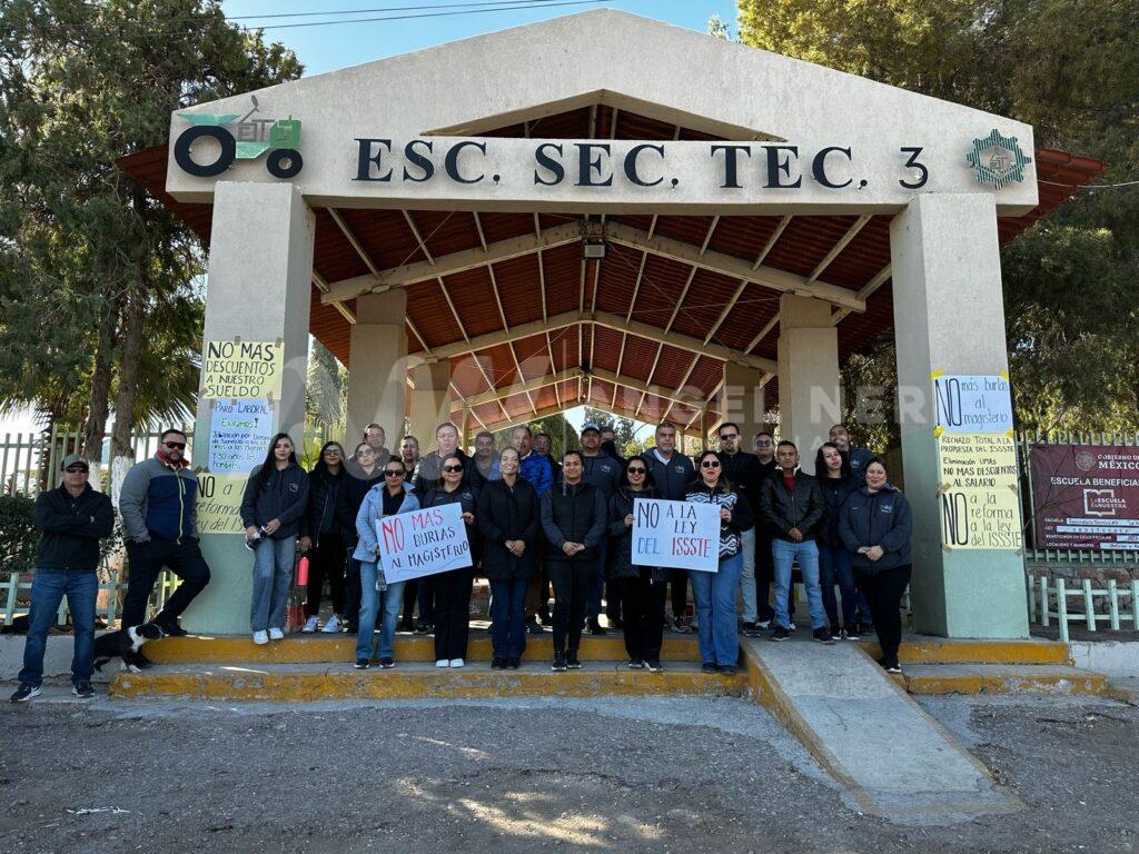Cientos de docentes se concentraron en el centro de la ciudad de Delicias para manifestarse en contra de la reforma a la Ley del Instituto de Seguridad y Servicios Sociales de los Trabajadores del Estado (ISSSTE) 2025. La protesta se llevó a cabo de manera pacífica, con los maestros colocando pancartas y lonas con lemas como «¡Por nuestros derechos, por nuestro futuro!», «Trabajo bajo protesta» y «No más descuentos a nuestro sueldo».
