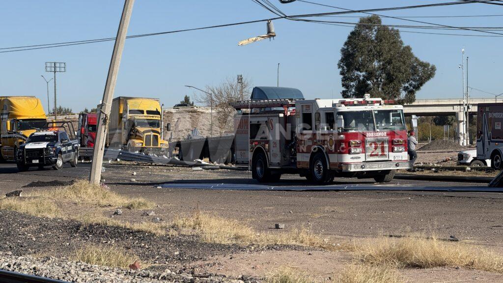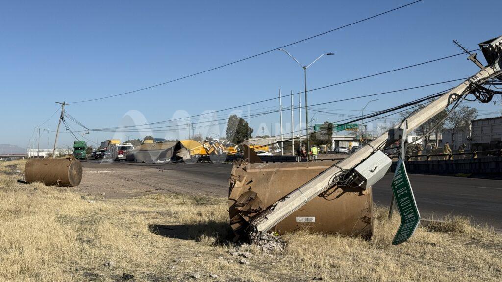 El conductor resultó lesionado y fue trasladado a un hospital para recibir atención médica. Además, la carga del tráiler se esparció por la vialidad, causando daños materiales en la infraestructura vial.