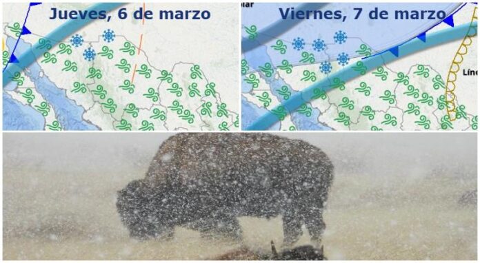 Para el sábado, ya no pronostican posible caída de nieve, pero todavía lluvias aisladas, mientras que las temperaturas mínimas se mantendrán en el mismo rango, así como el viento y las tolvaneras.