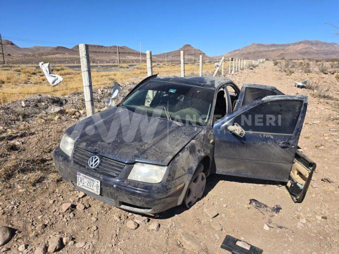 Una volcadura de un automóvil se registró en la vía federal 45, en el tramo que conecta Delicias con Chihuahua, cerca del entronque a San Diego de Alcalá.