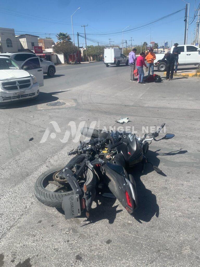 Un accidente vehicular se registró la tarde de este lunes en el sector sur de la ciudad, dejando a un joven motociclista lesionado.El incidente ocurrió en la intersección de las avenidas de los Naranjos y San Pedro, donde el joven repartidor, que conducía una motocicleta, colisionó con una SUV de marca Chrysler, color blanco, conducida por una mujer.