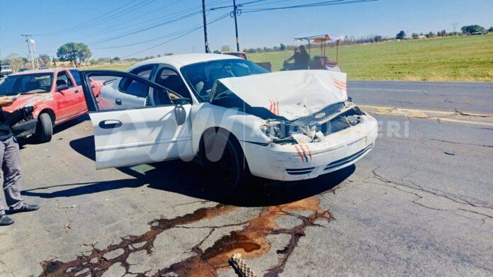 Un choque entre dos automóviles compactos se registró la tarde de este martes en la carretera Delicias a Rosales, específicamente en el lugar conocido como «Rancho los Compadres».