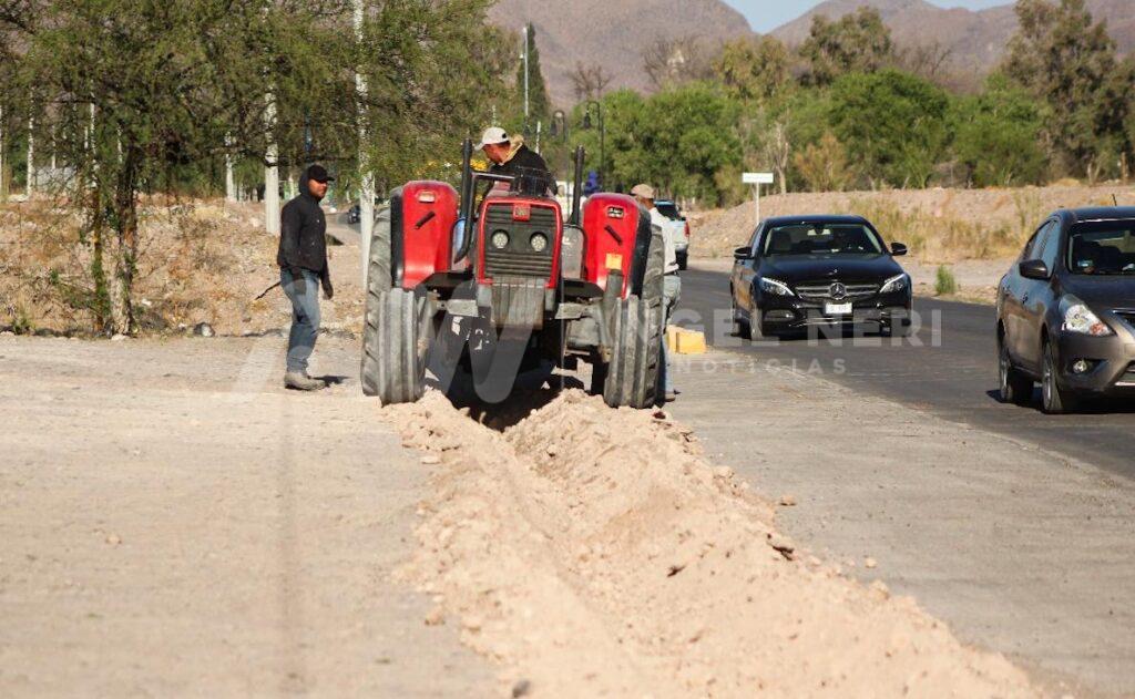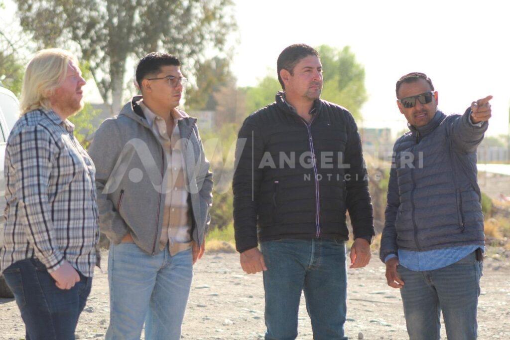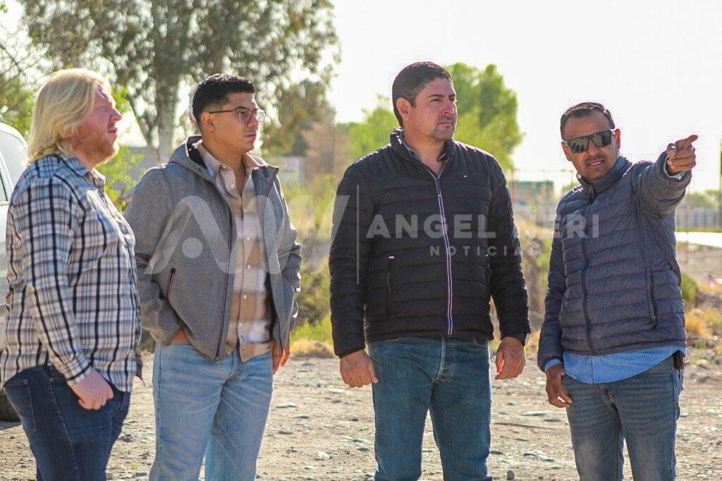El presidente municipal de Rosales, José Dolores Andujo Gómez, junto con el Director de Desarrollo Urbano, Catastro y Ecología, Ing. José Luis Quintana Carrillo, supervisaron este jueves las labores de instalación de alumbrado público subterráneo en la entrada principal de Rosales.