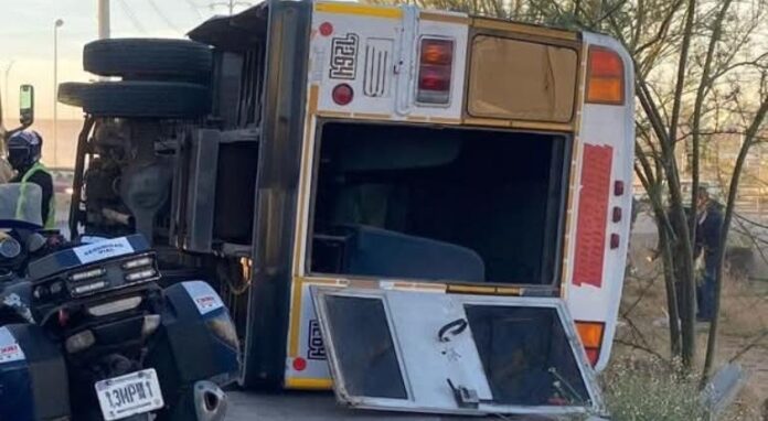 En el lugar el conductor de un camión de personal con número económico 7264 sin placas perdió el control, chocó y volcó.