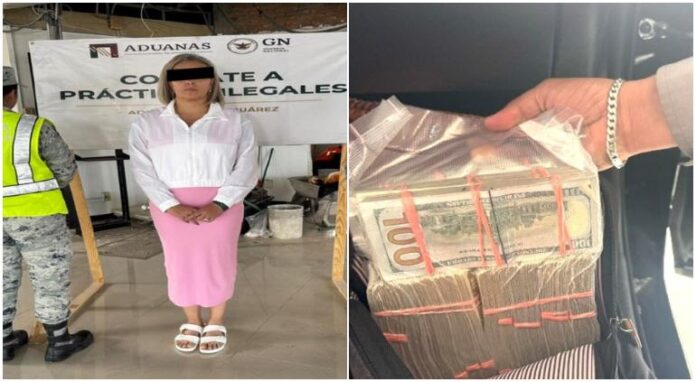 La mujer fue detenida. Las fuerzas federales le aseguraron 299 mil 660 dólares, más de 6 millones 021 mil pesos con el tipo de cambio actual.